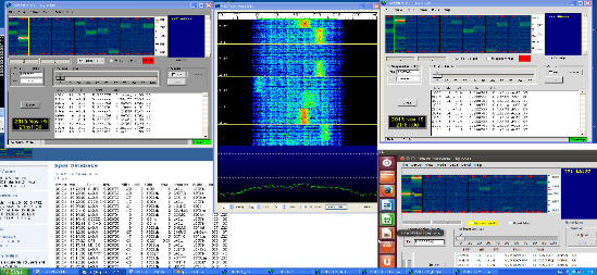5 instances of WSPR on the same screen, the lower left is WSPR 4.0 running on Ubuntu in my